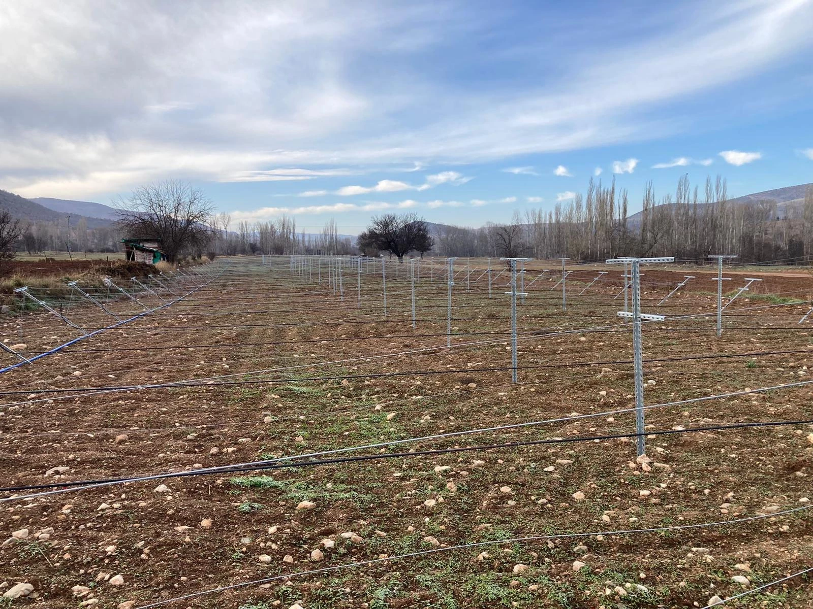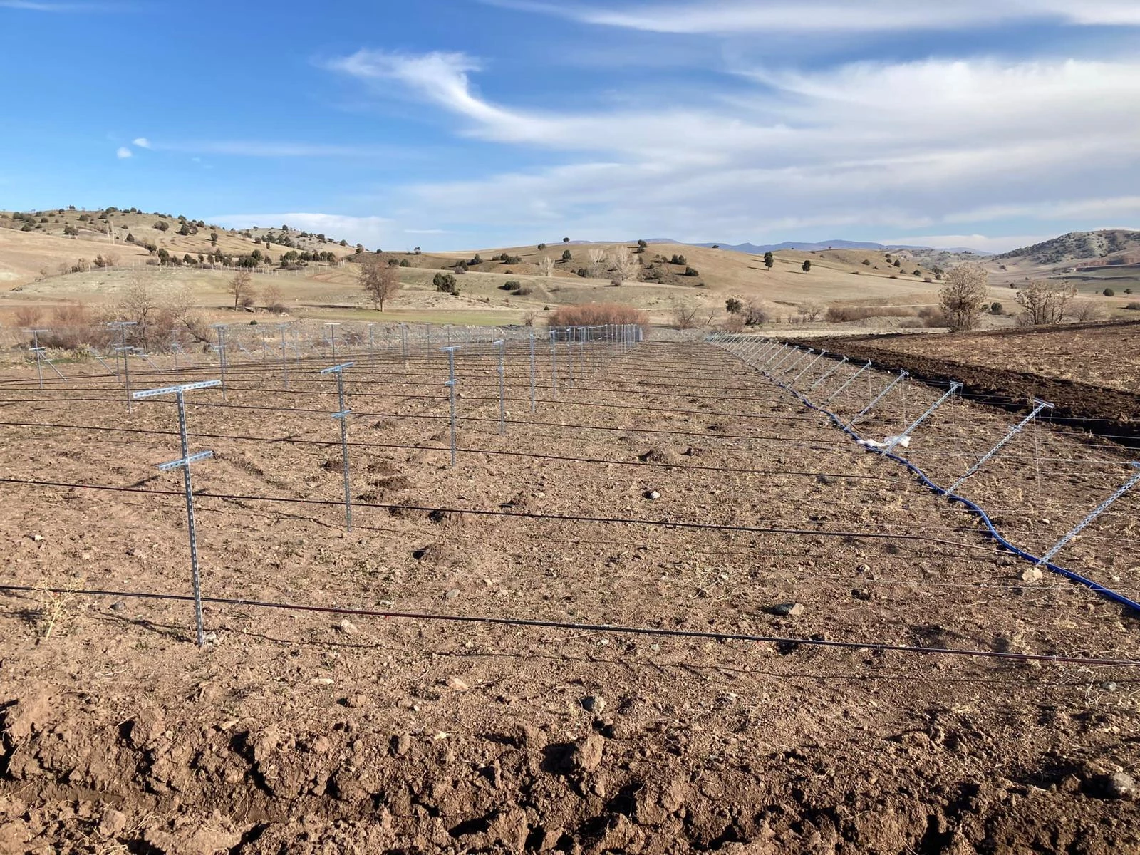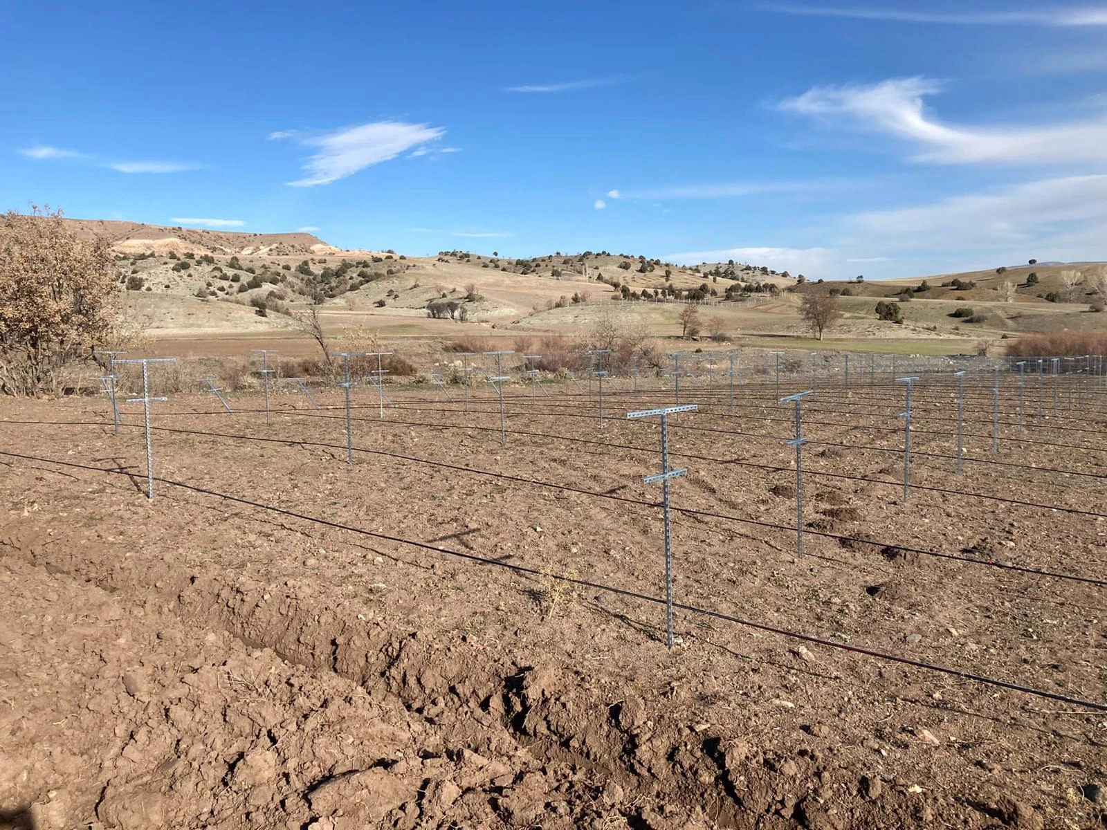 Within the scope of the projects, a 52-decare vineyard with a high-cordon training and fencing system has been established, accompanied by the installation of a drip irrigation system, fertilization, and soil analysis.