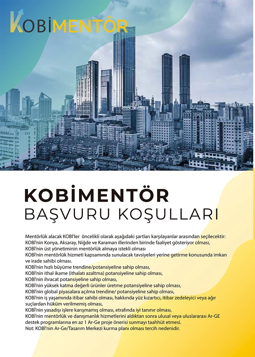 Sanayi ve Teknoloji Bakanlığına bağlı Konya Ovası Projesi (KOP) Bölge Kalkınma İdaresi Başkanlığı tarafından desteklenen uygulayıcı kuruluşu Necmettin Erbakan Üniversitesi ve InnoPark Konya Teknoloji Geliştirme Bölgesi Yönetici A.Ş. olan “KOBİ Mentörlük Sistemi Projesi” hayata geçirildi.