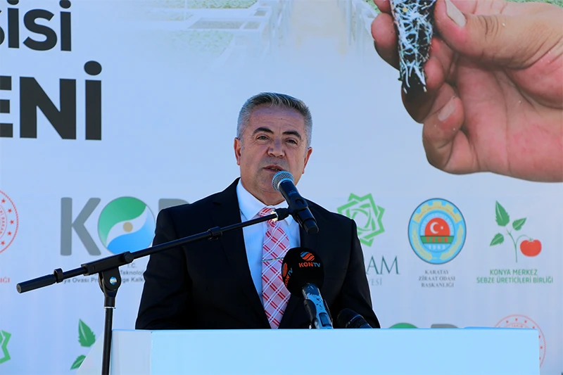 Konuşmasına Konya’da yaklaşık 900 bin hektarlık bir alanda sebze üretimi yapıldığını hatırlatarak başlayan İl Tarım ve Orman Müdürü Ali Ergin’de bu alanda yaklaşık 100 milyon sebze fidesi ihtiyacı olduğunu belirtti. Kurulan tesiste 12 milyon adet üretim yapılacağını kaydeden Ergin, Konya için böylesine önemli bir yatırıma imza atan kurum ve kuruluşlarına teşekkür etti. Ergin “Fideleri hastalıktan kurtaracak, çiftçilerimize daha fazla kar etmemelerinin yolunu açacağız. Verim ve kalite artışını sağlayarak fidelerin taşıma sırasında gördüğü zararların da önüne geçmiş olacağız” şeklinde konuştu.
