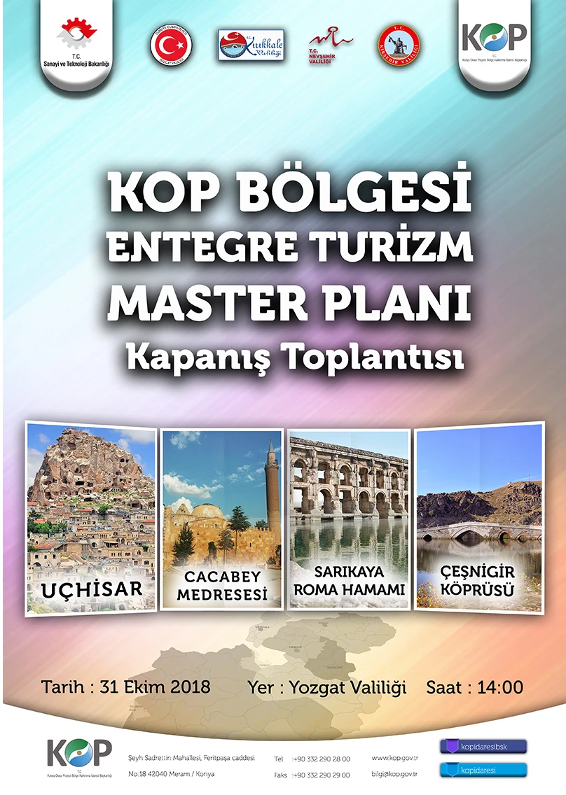 Sanayi ve Teknoloji Bakanlığına bağlı Konya Ovası Projesi (KOP) Bölge Kalkınma İdaresi Başkanlığı tarafından 2016 yılında Aksaray, Karaman, Konya ve Niğde için hazırlanan KOP Bölgesi Turizm Master Planı, bölgenin görev sahasına sonradan eklenen Kırıkkale, Kırşehir, Nevşehir ve Yozgat içinde hazırlandı.