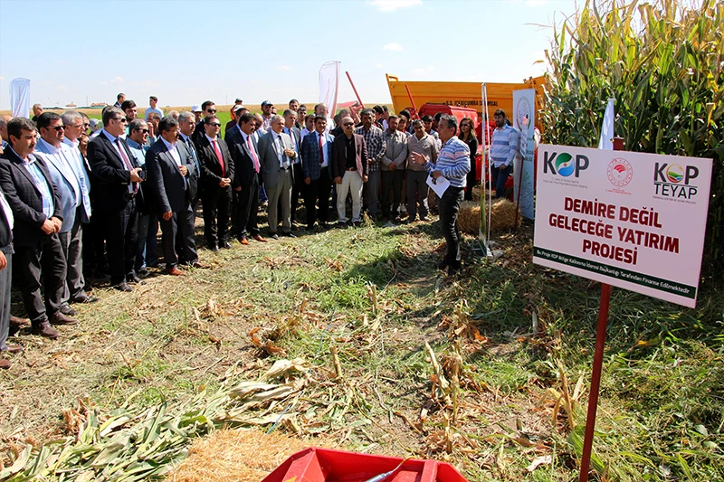 Konya İl Tarım ve Orman Müdürü Ali Ergin, kırsal kalkınmanın yerel ve bölgesel kalkınma olmak üzere iki sacayağı üzerine inşa edildiğini belirterek; “Gerek Tarım ve Orman Bakanlığı gerek diğer tarım kuruluşlarımız olarak ve gerekse KOP Bölge Kalkınma İdaresi Başkanlığımız olarak hem yerel kalkınmayı hem de bölgesel kalkınmayı en iyi şekilde yapmak için proje desteklerimizi sürdürüyoruz. Çiftçilerimiz, Sivil Toplum Kuruluşlarımız, Kooperatif ve Birliklerimiz, Akademisyen ve Önder Çiftçilerimizle işbirliği içerisinde yürüttüğümüz projelerimizle uygulama alanlarındaki ürün verimliliği ve çeşitliliğini ön plana çıkartıyoruz. Bugün tarla günü yaptığımız uygulama alanımızda ilk ürün olarak Macar Fiğ bitkisi ekildi ve ardından yeniden toprak işlemesi yapılmadan doğrudan ekim sistemi kullanılarak üzerine mısır bitkisi ekimi yapıldı. Görüldüğü gibi daha az maliyetle verim oranı yüksek ikinci ürün alımı gerçekleşmektedir. Geleneksel üretim sistemlerinin yerine daha bilimsel ve modern tarım tekniklerinin yaygınlaşması için bu ve benzeri tarla günleri etkinliklerinin yaygınlaşmasını arzuluyoruz” diye konuştu.