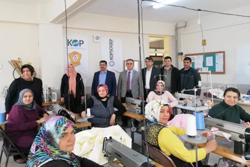 KOP Sosyal Gelişim Projesi (KOPSOGEP) kapsamında 2019 yılında hibe finansman desteği sağlanan ve Ereğli İlçe Milli Eğitim Müdürlüğü ve Yunus Emre Mesleki ve Teknik Anadolu Lisesi tarafından yürütülen ‘KOP ile Üreten Kadınlar Projesi’nin 680 saatlik dikiş eğitimini tamamlayan 18-50 yaş arası 20 kadın kursiyer, tüm dünyayı etkileyen yeni tip Koronavirüs salgınıyla mücadele eden kahraman Türk Sağlık Ordusunun maske ihtiyacını karşılamak üzere harekete geçti.