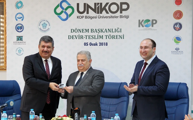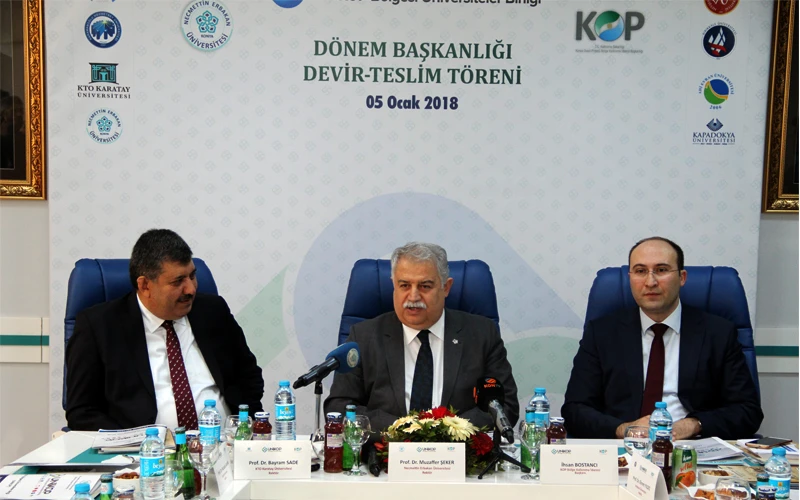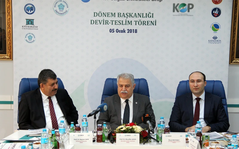 KOP Bölge Kalkınma İdaresi Başkanı İhsan Bostancı ise Necmettin Erbakan Üniversitesinin dönem başkanlığının hayırlı olması temennilerinde bulunarak, “2016 yılında görev sahamızın genişlemesiyle üniversite sayımız 11’e yükseldi ve bugün de Kapadokya Üniversitesinin katılımıyla bu sayı 12’ye çıkacak. Bu çok ciddi bir akademik birikim ve öğrenci potansiyeli anlamına geliyor. Birliğin kurulmasında amacımız bölge kalkınmasında üniversitelerin daha aktif bir şekilde görev almalarını sağlamaktı. Gelinen son noktada yapılan toplantı ve çalışmalarla çok iyi bir mesafe aldığımızı görüyoruz. Bu aşamadan sonra Necmettin Erbakan Üniversitemiz konulan çıtayı çok daha yukarıya çıkartacaktır. Bundan sonra görevi devralacak üniversitelerimizin de bu çıtayı daha yükseğe çıkartacağını ümit ediyoruz. Çalışmalarımız kapsamında 16 proje başlığı altında 15 milyon liralık kaynak üniversitelerimize tahsis edildi. Önümüzdeki dönemlerde de bu rakamı arttırarak devam edeceğimizi düşünüyorum.” diye konuştu.