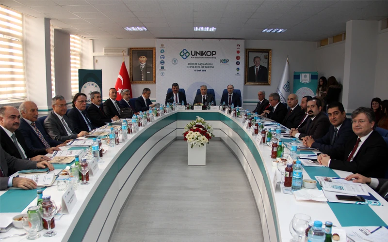 NEÜ Ahmet Keleşoğlu İlahiyat Fakültesi (AKİF) toplantı salonunda gerçekleştirilen toplantıya UNİKOP üyesi üniversitelerin rektörleri ve Konya Ovası Projesi (KOP) Bölge Kalkınma İdaresi Başkanlığı yetkilileri katıldı.