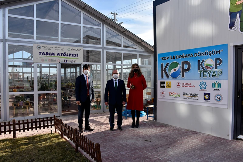 Sanayi ve Teknoloji Bakanlığına bağlı Konya Ovası Projesi (KOP) Bölge Kalkınma İdaresi Başkanlığının 2019 Yılı KOPSOGEP Mali Destek Programı kapsamında finansman desteği verdiği ‘KOP ile Doğaya Dönüşüm Projesi’ özel eğitim alan öğrencileri toprakla buluşturuyor. Proje yürütücüsü Meram Melike Hatun Özel Eğitim Meslek Okulunu ziyaret eden KOP İdaresi Başkanı Mahmut Sami Şahin, okul bahçesine kurulan kompost tesisi ile 200 metrekarelik serayı inceleyerek yetkililerden bilgi aldı.