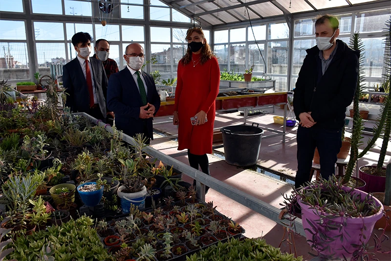 Toprak kadar temiz, yetiştirdikleri süs bitkileri kadar naif ve hassas öğrencilerin bir taraftan eğitim öğretim faaliyetlerini yürütürken diğer taraftan sosyal sorumluluk gereği çevre ve doğa sevgisiyle yetişmelerinin önemine değinen Başkan Şahin; “Bitki besleme, süs bitkisi üretimi ve bakımı gibi konularda özel çocuklarımız burada eğitiliyor. Sera içerisinde uygulamalı eğitimlerini tamamlayan çocuklarımız mezun olmalarının ardından süs bitkisi üretimine devam ederek hem meslek sahibi olabiliyorlar hem de aile bütçelerine katkı sağlayabiliyorlar. Seraya entegre yürütülen diğer projede ise, sera içerisinde oluşan artıklar, tarımsal atıklar ve okulda eğitim alan 110 öğrencinin yemeğinden çıkan artıklar gibi tüm organik atıklar kompost yapımında kullanılarak geri dönüşüm sağlanmış oluyor. Cumhurbaşkanımız eşleri Emine Erdoğan Hanımefendinin himayelerinde yürütülen ‘SIFIR ATIK’ projesi kapsamında sürdürülen bu projemizde organik madde miktarı yüksek atıkların burada kompost yapılarak tekrar tarımsal üretimde kullanılması ve bu uygulamaların yaygınlaşarak arttırılmasını hedefliyoruz, Öğrencilere verilen eğitimlerde atıkların çöpe değil doğaya geri kazandırılacağı uygulamalı olarak gösterilmiş oluyor” diye konuştu.