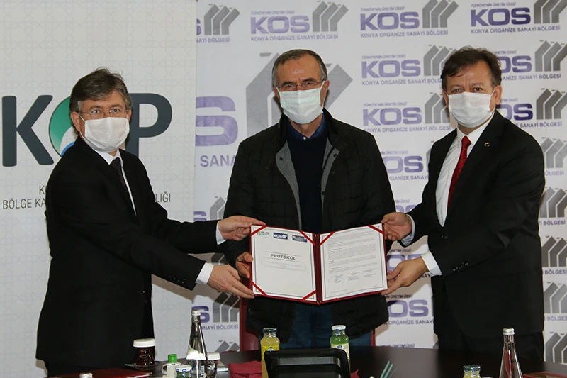 Sanayi ve Teknoloji Bakanlığına bağlı Konya Ovası Projesi (KOP) Bölge Kalkınma İdaresi Başkanlığı, Konya Organize Sanayi Bölgesi (KOS) ile Konya Sanayi ve Teknoloji İl Müdürlüğü arasında ‘Sanayide Enerji Verimliliği Uygulamaları Projesi’nin protokolü imzalandı. Proje ile, Konya OSB’nin 3. Kısım Genişleme Alanı’ndaki 250 watt’lık aydınlatma armatürleri, verimi çok daha yüksek olan led aydınlatmalarla değiştirilecek. Projenin imza törenine KOP Bölge Kalkınma İdaresi Başkan vekili Halil İbrahim Tongur, Konya Organize Sanayi Bölgesi ve Organize Sanayi Bölgeleri Üst Kuruluşu (OSBÜK) Başkanı Memiş Kütükcü ile Konya Sanayi ve Teknoloji İl Müdürü Vehbi Konarılı katıldı.