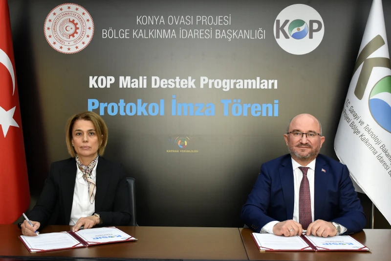 Sanayi ve Teknoloji Bakanlığına bağlı Konya Ovası Projesi (KOP) Bölge Kalkınma İdaresi Başkanlığı tarafından 2021 Yılı KOP Mali Destek Programı kapsamında sağlanan hibe destekleri için protokol imza törenleri düzenleniyor. KOP İdaresinde gerçekleştirilen törende Nevşehir Valisi İnci Sezer Becel ile KOP Başkanı Mahmut Sami Şahin’in imzasıyla destek paketi uygulamaya konuldu.